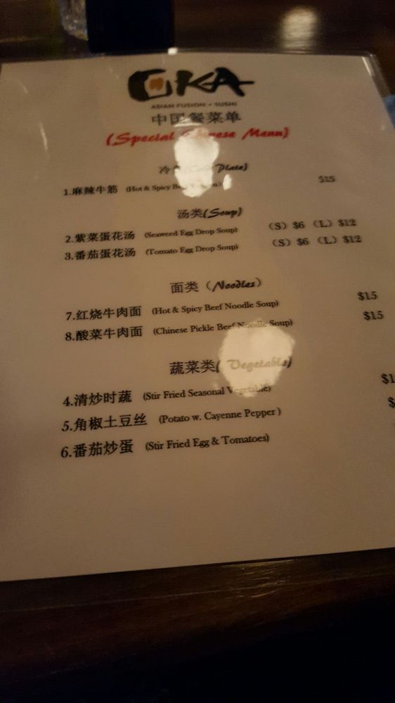 Oka Asian Fusion, located in Lancaster, PA, offers a diverse menu of Asian fusion and Japanese dishes. With options for both meat-eaters and vegetarians, the restaurant provides a casual yet romantic dining experience with indoor and outdoor seating. Their extensive menu includes delicious soups like Miso and Tom Kha Ga, fresh salads like Kani and Spicy Tuna, and appetizers such as Crab Rangoon and Pork Egg Rolls.